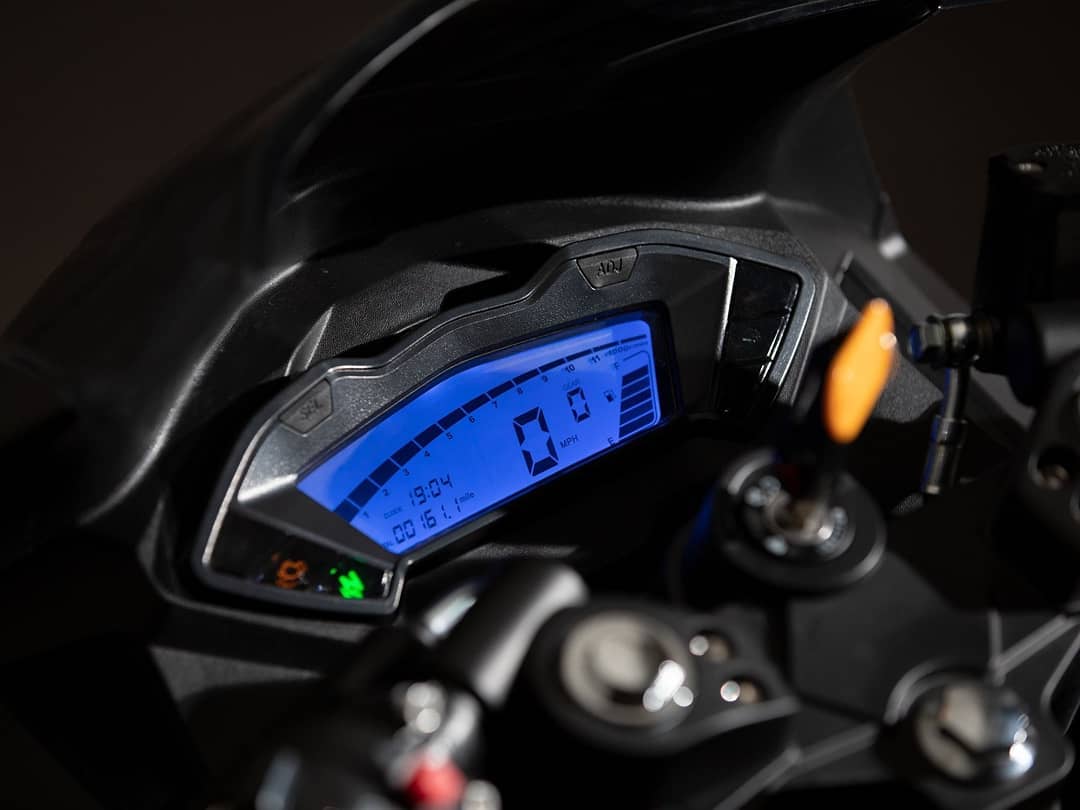 handlebars, a fully digital instrument cluster, split seats, alloy wheels, and